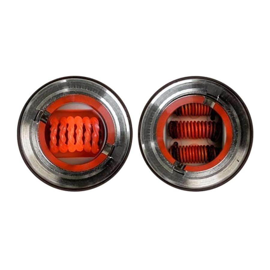 The triple titanium coil is geared towards heavy hitters and large loads. 3 coils provides a substantial amount of heat and surface area to make quick work of even larger loads of wax. The triple titanium coil is wrapped around black ceramic rods which are porous in nature to allow you wax to wick, rather than slip off the coils.